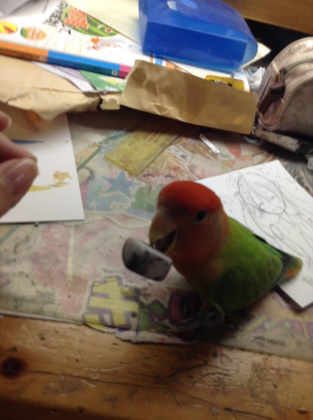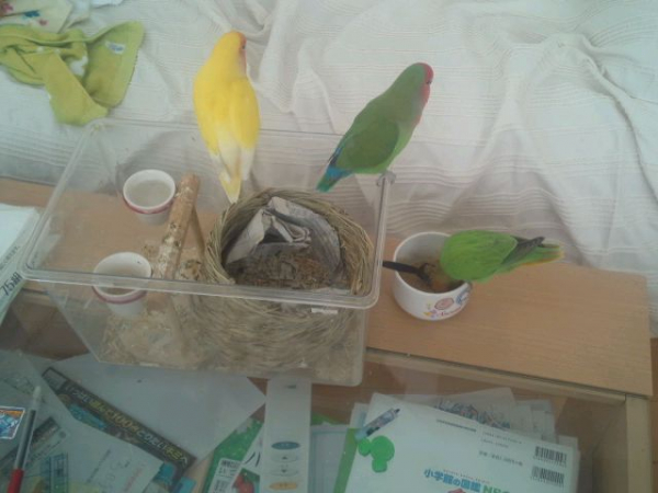 2012.05.28 00:26 もっちゃん あぁ、なるほど!確かにその表現が一番しっくりくるかもしれません(笑)我が家は繁殖させようという気はなかったので、ペアにはしなかったのですが(女の子が当たらなかったのもありますが)、いろは(黄色い子)がお嫁さんが欲しくてしょうがないみたいです。もいんさんのところは、そういう鳥さんいましたか?
