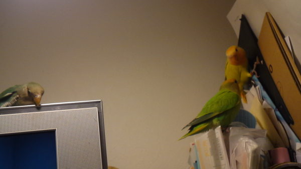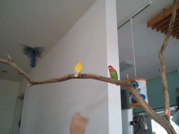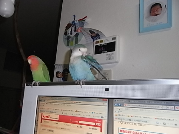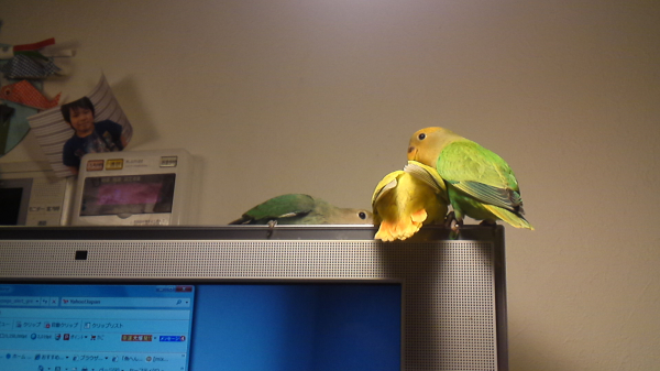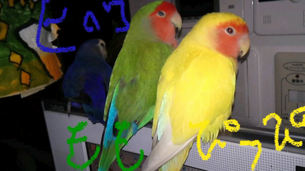 2012.05.25 18:58 もっちゃん 緑の子を一番最初に買ってその1年後に黄色い子を買ったのですが、緑の子がすーごいヤキモチ妬きで人間大好き年長者なのでデカい顔して過ごしてます(笑)コザクラの代名詞ラブバードのような仲良しには今後もなれそうにないですね。オス同士なのもあると思いますがwちなみにその1年後に来たセキセイへの態度も、同じ感じです^^;