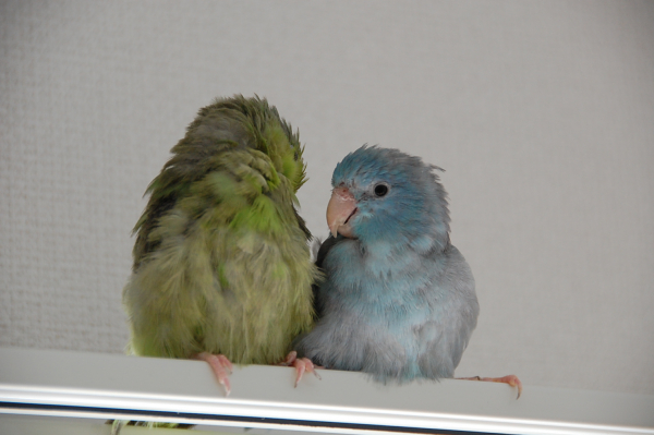 マメルリハインコのまめちゃんとそらちゃんです。 よろしくお願いします。