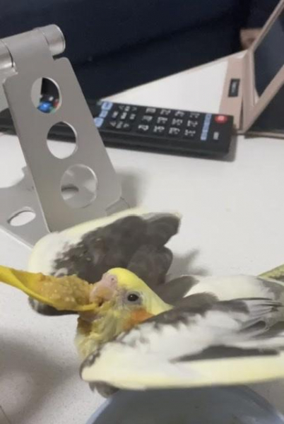 おっとりしていて、オカメちゃん特有のパニックを起こすはずの大きな音や振動にもびくともしないマイペースさを持っています🦜