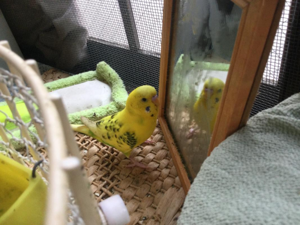 • 性格:勇気と正義感。喧嘩の強い女の子。ナルシスで夢見がち。鏡ばかり見ています。幼鳥の頃は最後まで伏せていた。常に鏡に吐き戻しているので男かと思うのですが、脚を開いているのと時折甘えた顔、ときめいた表情は女の子ぽい。どちらでしょうね。