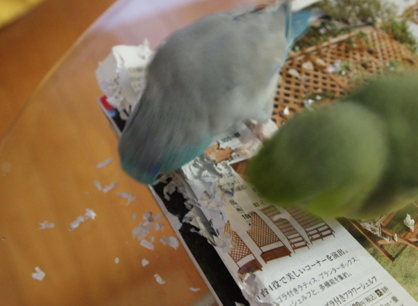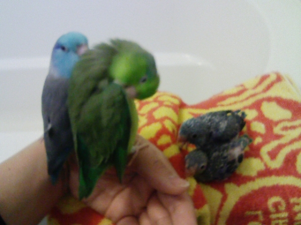 鳥さん一家は、みんな元気で良くたべ、良く騒いでます。
