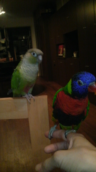 ノドグロゴシキモドキとホオミドリアカウロコインコを飼っています。