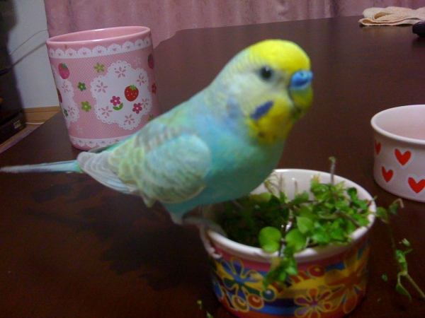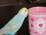 ケンソン系パステルカラーレインボーのセキセイインコの瑠璃(るり)ちゃん(男の子)と暮らしています。
