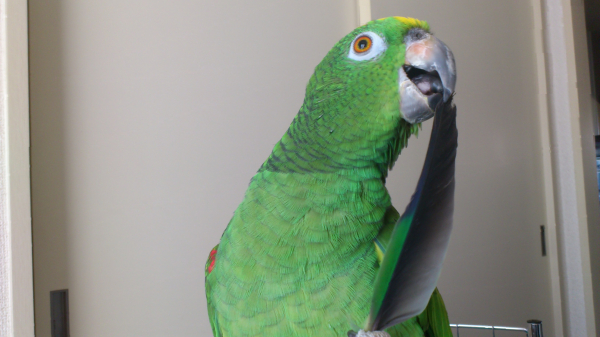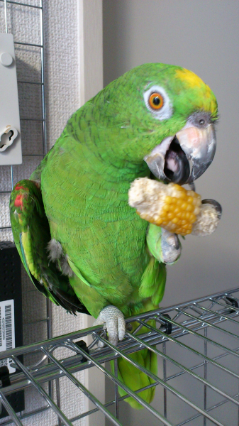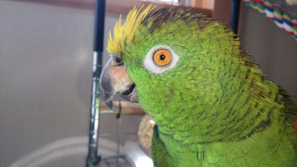 オカメインコの”小雪”、キビタイボウシインコの”ライム”、キホウボウシインコの”ココロ” 新たに加わったオオバタンの”王子”とのんびり暮らしています。