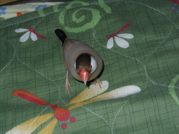 コザクラインコ2羽、ジャッキーとチェーン シナモン文鳥2羽、ポピーとブン太を飼っています!