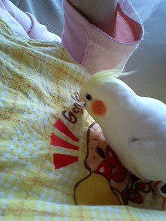 ちなみに、ただいま、オカメインコちゃんを慣らす事にトライ中。