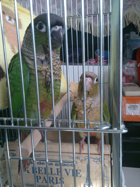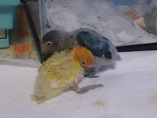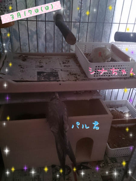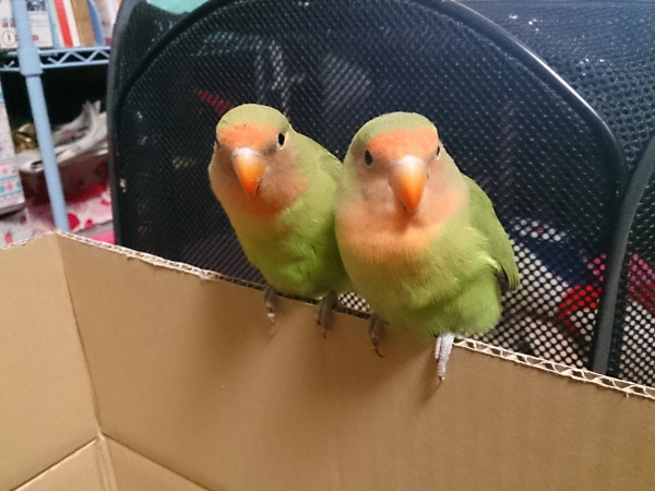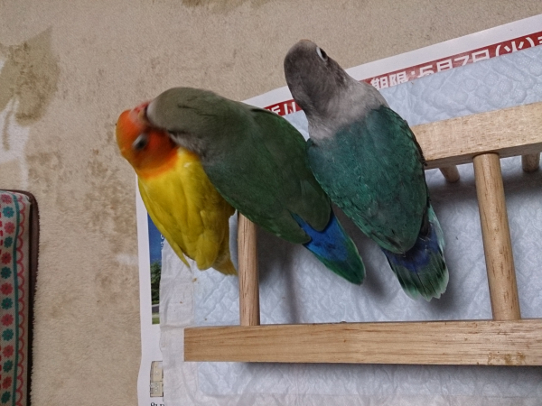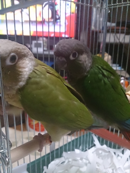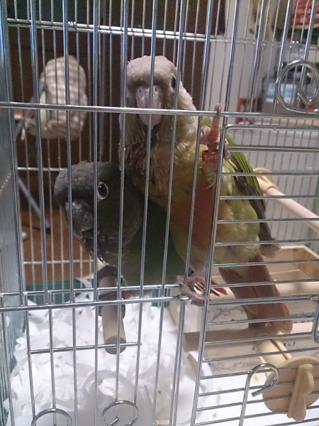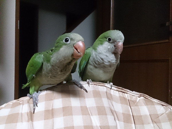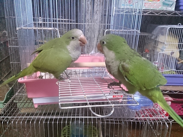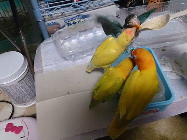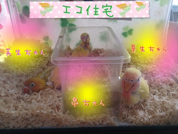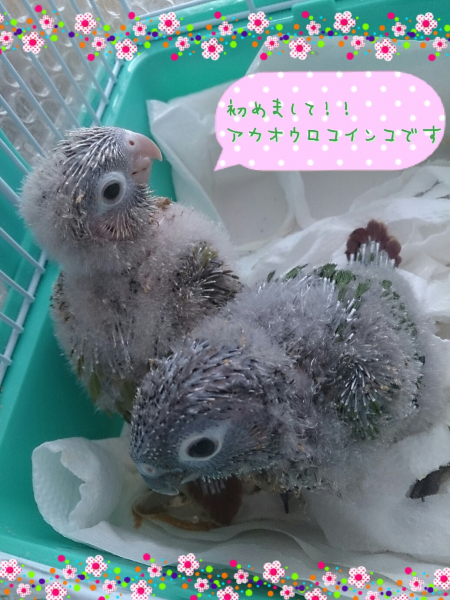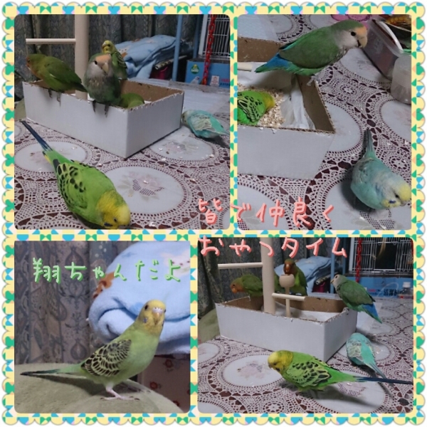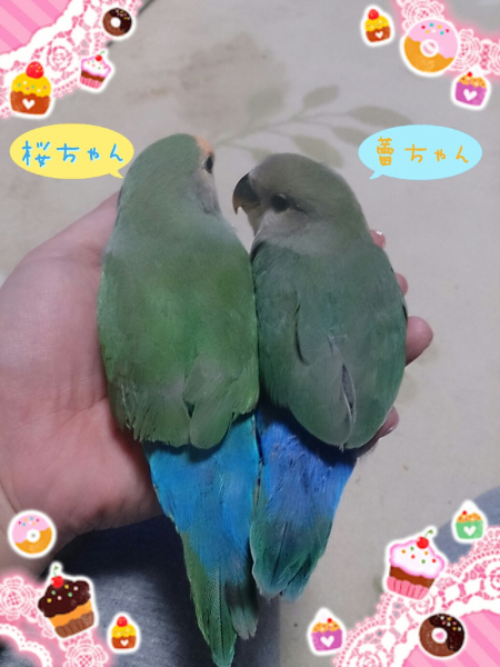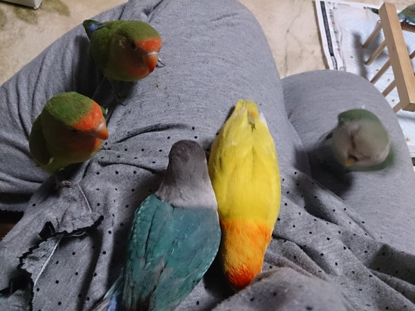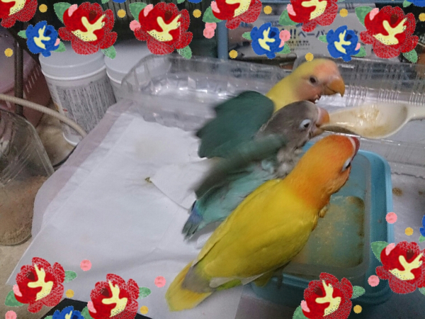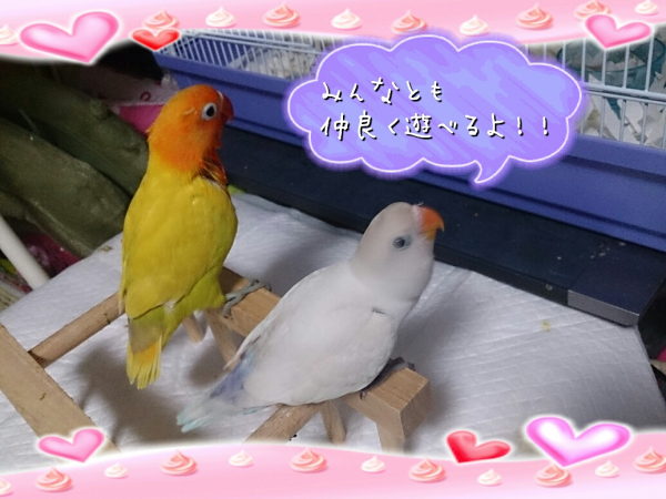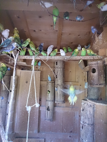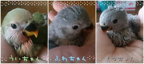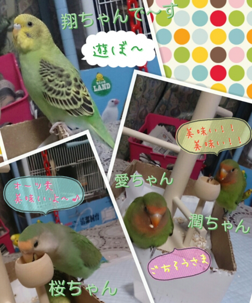 ソロモンオウム・モモイロインコ・オキナインコ・アカオウロコインコ・オカメインコ・コザクラインコ・ボタンインコ・ジャンボセキセイ・セキセイインコ・文鳥・胡錦鳥・錦花鳥・十姉妹と暮らしています。