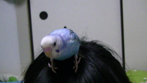 生後2ヵ月ほどのセキセイインコのぴーすけと暮らしています♪