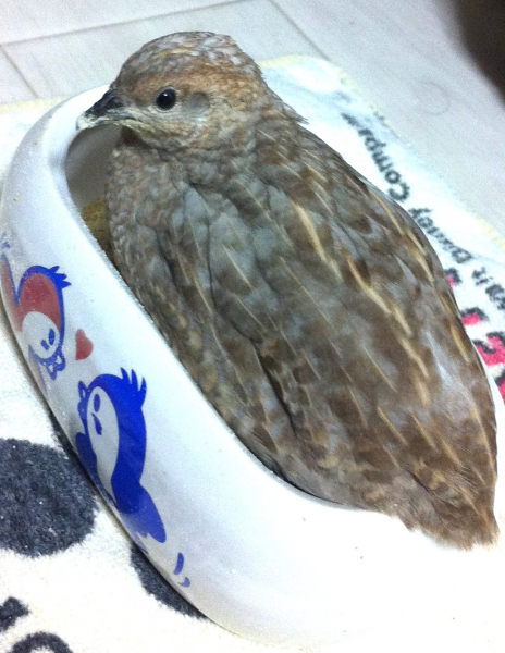 昔からウズラが大好きで 現在は、並ウズラ♂と、ヒメウズラ♀2羽を飼ってます。 可愛いくて仕方がない!