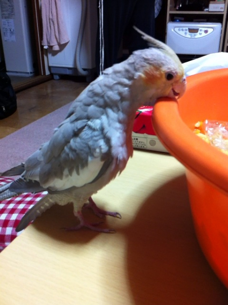 北の大地で、♀のオカメインコシナモン1羽と暮らしています。