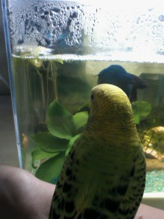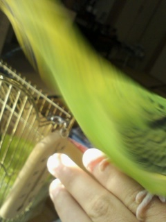 セキセイインコ♀(多分オパーリングリーン)を飼ってます。この子で2代目。飼ってるというよりカイザーに使われてるようなもんですが。