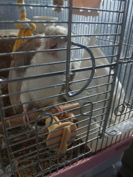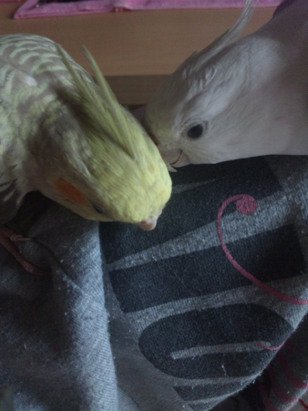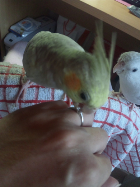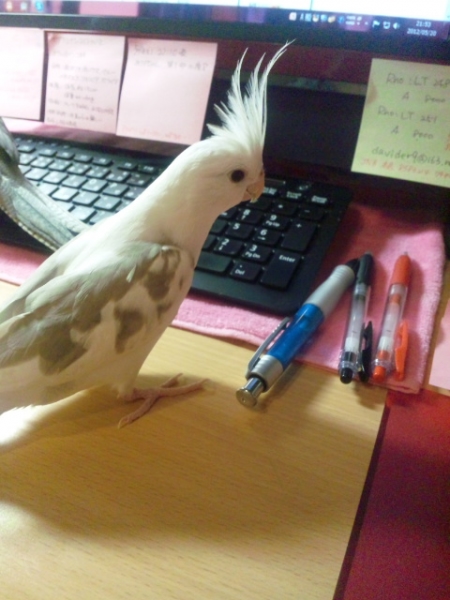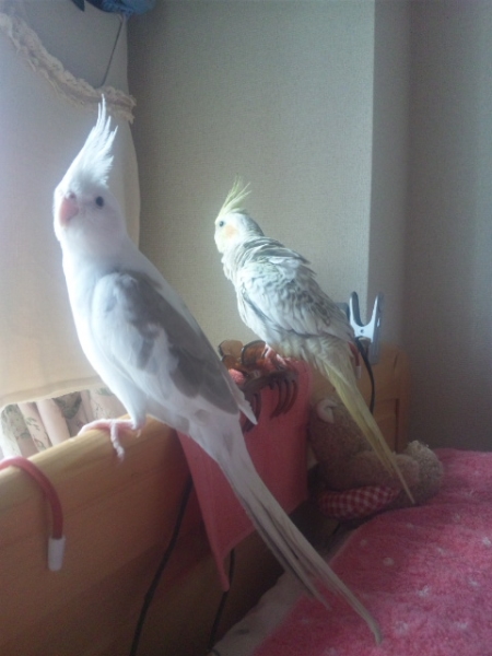 オカメとサザナミとセキセイ、犬と暮らしてます。去年6月、オカメ雛誕生!オカメ、サザナミ、セキセイの魅力に惚れ。今は以前小さかったオカメちゃんもすっかりと大人になり、オスは自己主張の多いこと。毎日、ギャーギャーと雄叫びしています。何故か?心地よいですよね〜。オカメの迫力にサザナミやセキセイは声が負けてしまってますね。シーンとしたときのサザナミのお喋りが楽しみ!