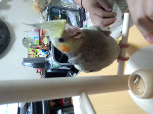 パールカラーのオカメインコ おーじろうくんです あだ名は おーちゃんです カワイくて毎日チューしてます(笑)