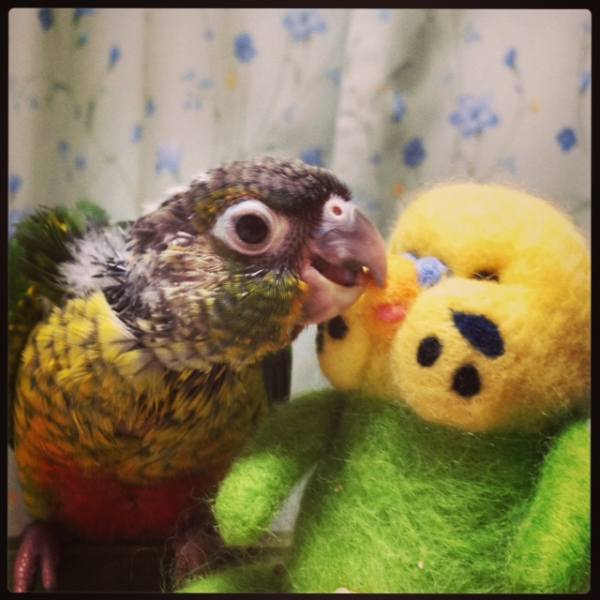 3羽のセキセイさん(すみれ♂、ひまわり♂、フジ坊♂)とウロコインコのハルちゃんと暮らしてます。