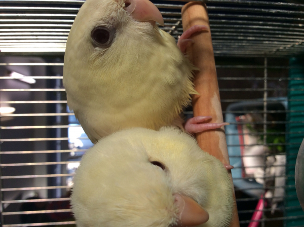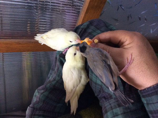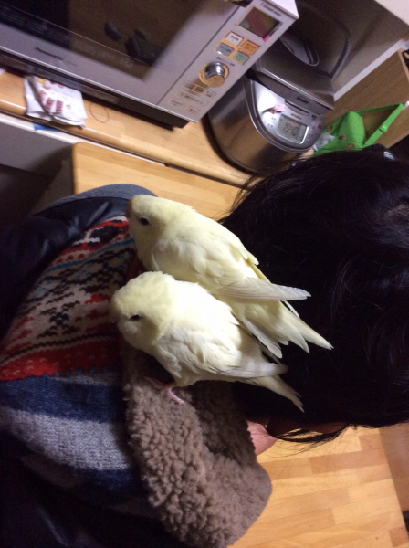 セキセイインコ:1羽 十姉妹:7羽 レモンカナリア:1羽 サザナミインコ:3羽 桜文鳥:1羽 と暮らしています。