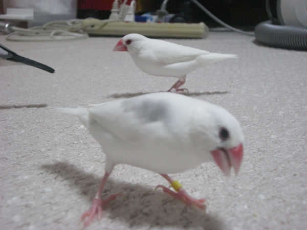 白文鳥2羽、桜文鳥2羽、シルバー文鳥1羽飼ってます。ペアリング試みてますがなかなかうまくいきません^^;
