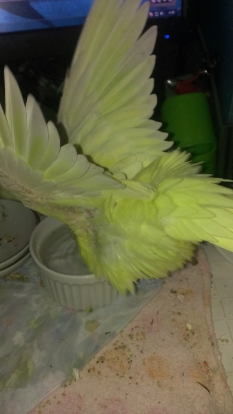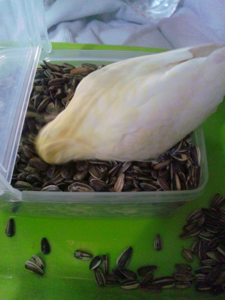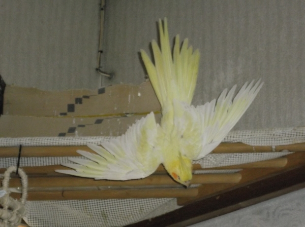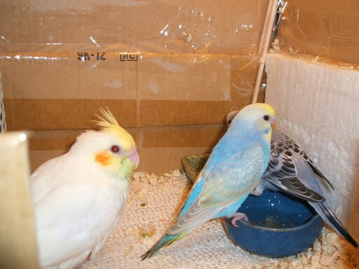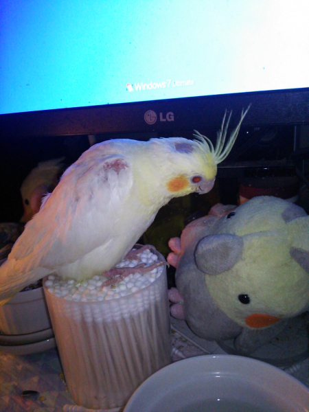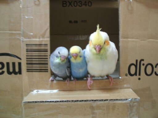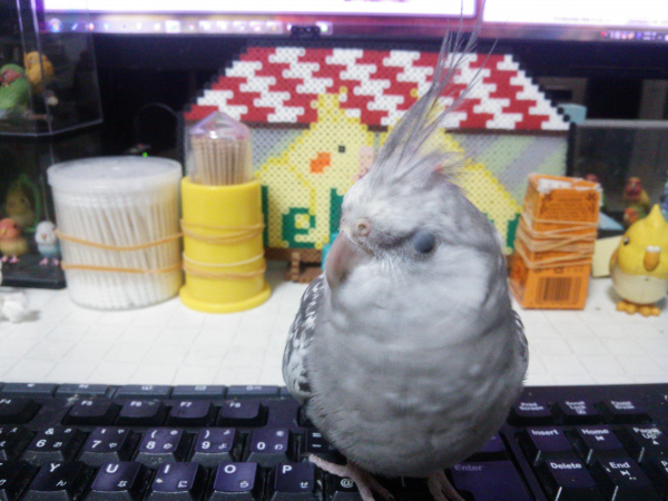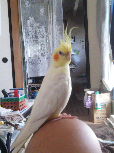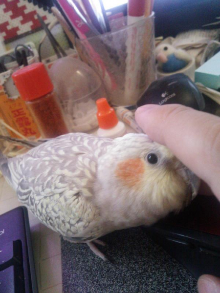 オカメインコ5羽、ホオミドリアカオウロコインコ1羽、文鳥1羽と共に生活しています。