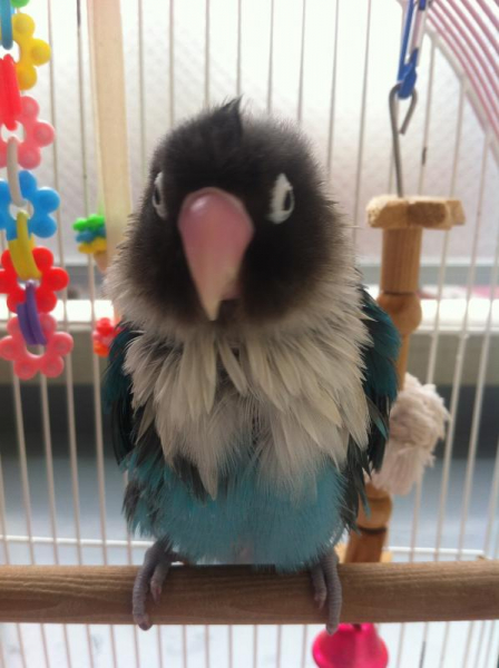- 性格:甘えん坊で淋しがり屋です。チュウが愛情表現だと知っていて、キス魔です。 歴代のどのインコ類よりも賢く、ちょっと席を外しただけで呼びながら探しに来ます。