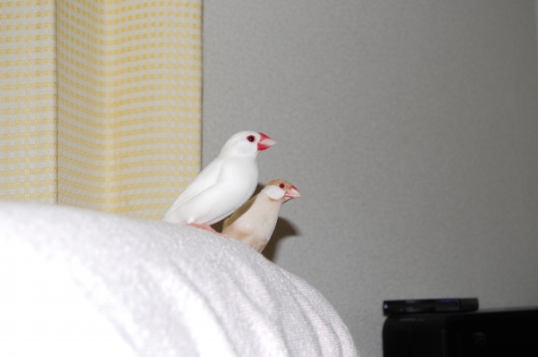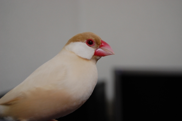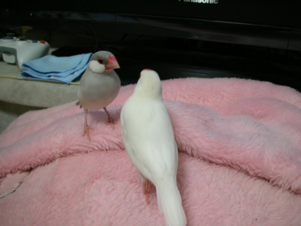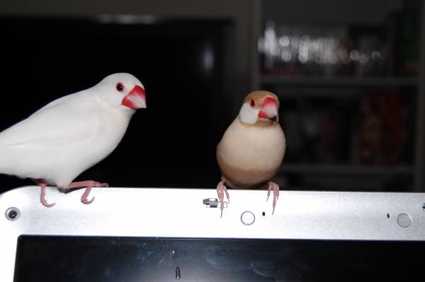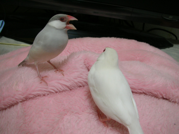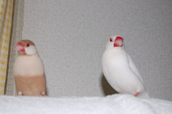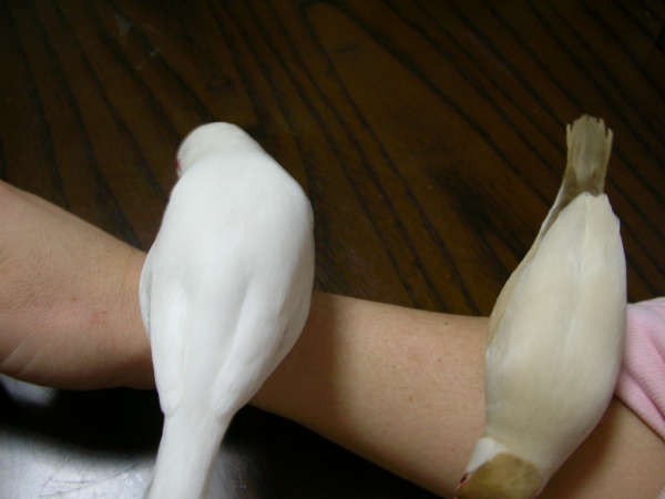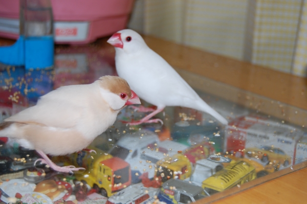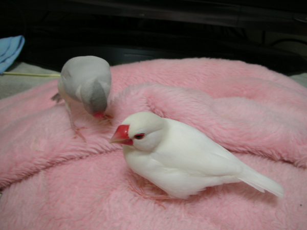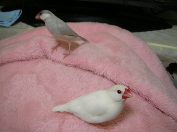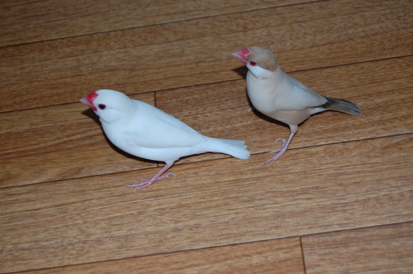 こんにちわ(^∇^)。自分のブログはないのですが、いろんな方のかわいい鳥さんたちのブログを読ませて頂くのが楽しみな私です。小学生の頃からずっとインコまめるりは文鳥十姉妹、いろんな鳥さんと過ごしてきました。今は真っ白くて雪のようにキレイなインコぴいちゃん(女の子)と、シナモン文鳥のモカ(女の子)と、白文鳥の空(男の子)と、シルバー文鳥のココの4羽に日々癒してもらっている私です。宜しくお願いします。