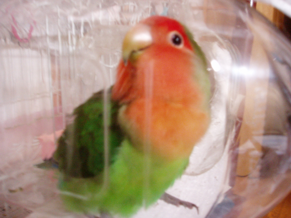 コザクラインコノーマルのメスを飼ってます。 手乗りじゃないので皮手袋で触ってます。