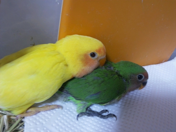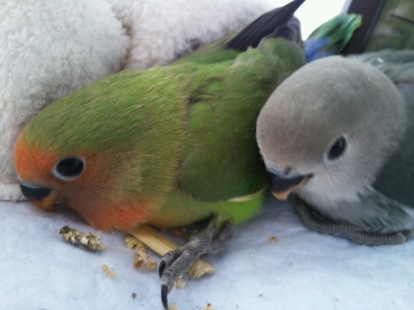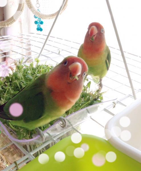 ボタン、コザクラ、オカメインコとチャボを飼っています。