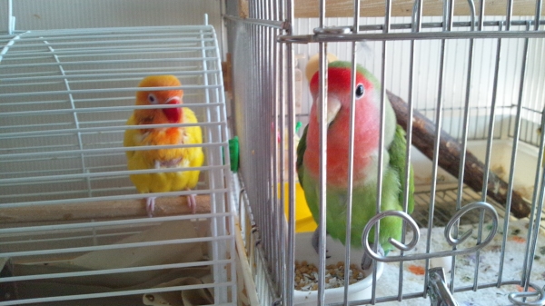 最近、ボタンインコのひなをお迎えしました。きっかけはペットショップをのぞきに行ったとき、この子を見つけたのですが、すでに毛引き症で胸(胃袋)を中心に地肌が丸裸。見かねて数日後引き取りました。今では少しづつ羽が揃ってきて安心しています。先輩インコのぴちのとなりに小さいカゴを置いて並んでいます。ひななのに、クチバシの噛む力はぴちより強いです。ふたたび、流血覚悟となりました。ぴちもすごかったけど、3年もたつとおとなしくなりますね。かわいい盛りです^^