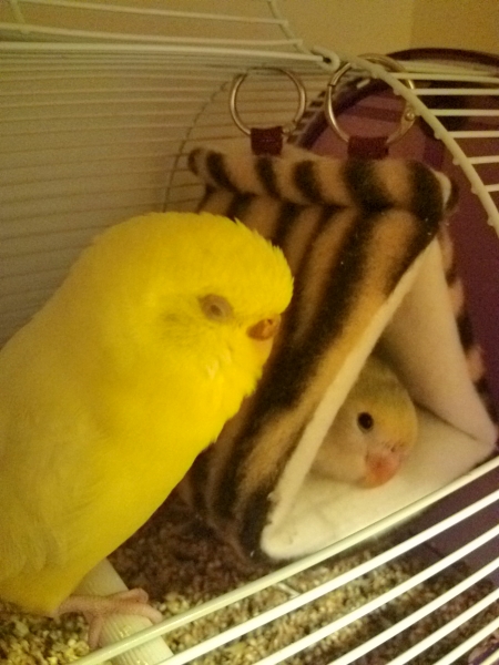 コザクラインコ2匹とセキスイインコが居ます♪