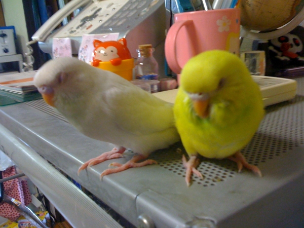 キキしろさんのインコちゃんは綺麗なアルビノとルチノーなんですね。私も長いことセキセイインコを飼っていましたが