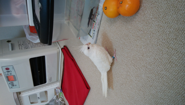 喋りませんが、オカメは機械音を真似します