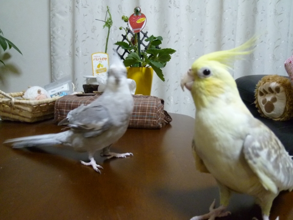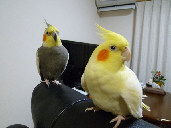 • ルチノー♂3ヶ月でお迎えしました。先輩オカメに影響され、つるんで飛ぶ、歌を歌う、ケージの周りをウロウロし挑発・・・。と成長著しいこです。たぁ坊、たっくんと呼ばれみんなになでなでされうっとり。とてもきれいな顔でイケメンです。
