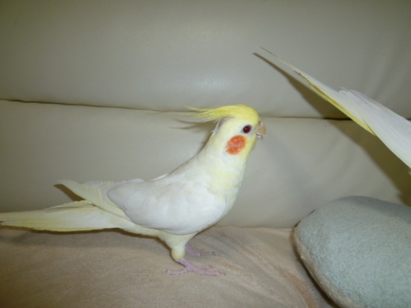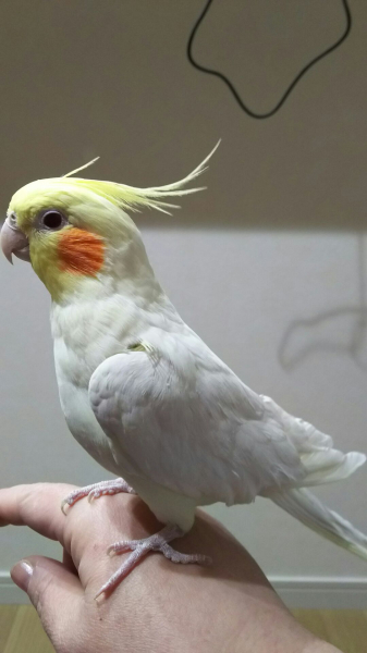 • ルチノー♂生後2ヵ月程で縁あってお迎えしました。べたなれちゃんです♪お話がとても上手で凜ちゃん!りん!りん!と名前を言ったりぽーちゃん、ぴーちゃんと他のオカメインコの名前も覚えました。歌はミッキーマウスマーチやぽーちゃんが歌うオリジナルソングが得意です♪