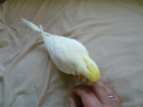 とてもおとなしく、手や肩に止まってぴぃ〜♪と優しい声で鳴きます。