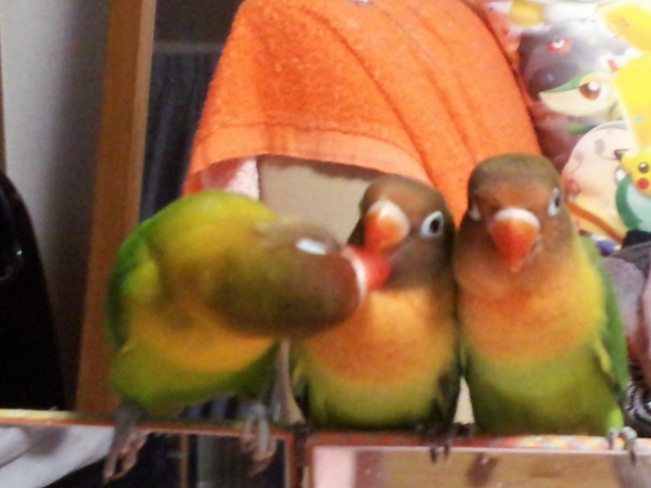 2013.09.17 21:06 kozakuramama ちえさん、こんばんわ、はじめまして、kozakuramamaです。 わたしは、コザクラインコですが、五羽飼っています。 同じ、五羽、愛鳥情報を読むと、うちの五羽とちえ☆さんの五羽と、五羽同士の関係が同じですね。 私もはじめは、二羽プラケースに居たこを一羽だけ連れてきましたが、一月後に覗いたら まだいたので、おむかえしましたよ。でも、忘れたみたい。あとは、一目ぼれとか、あと一羽とかで とうとう五羽に、末っ子五番目は、ひなたちゃんと同じく、つよいですよ。 よろしければ、また、五羽同士でお友達になってくださいね。 また、