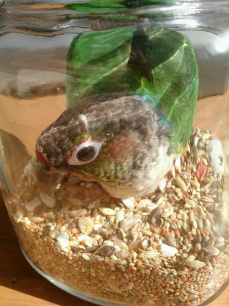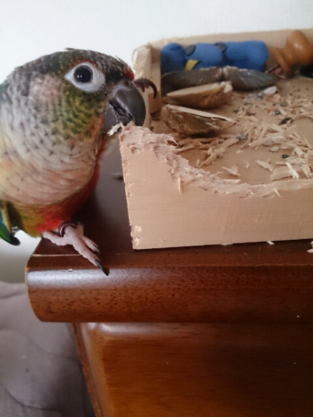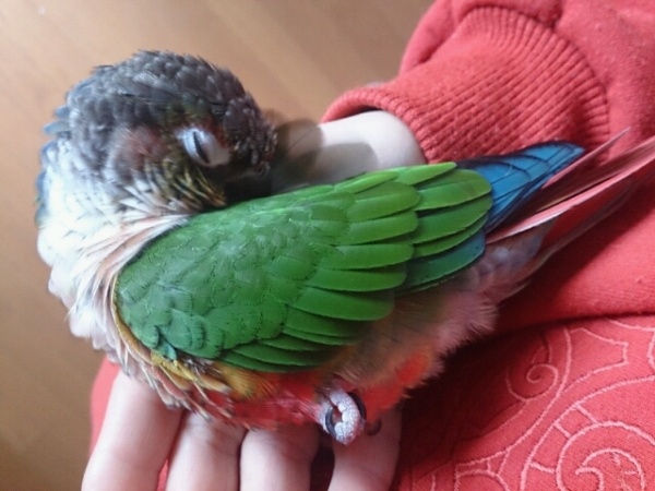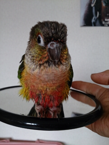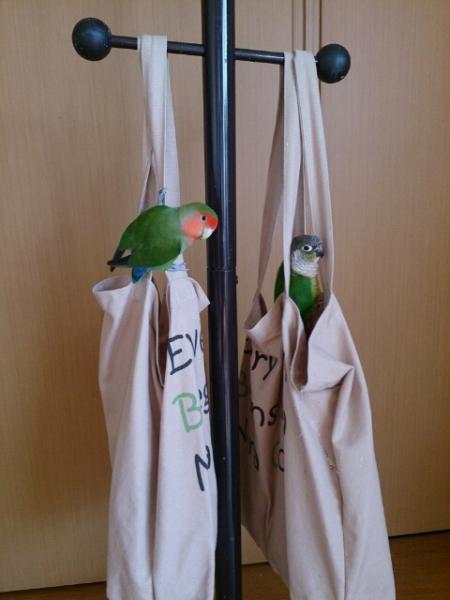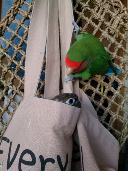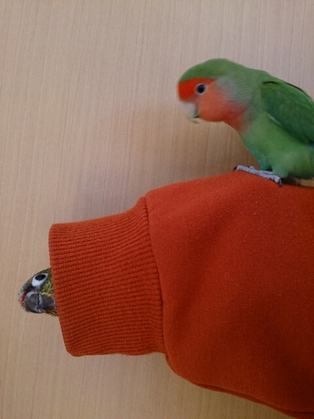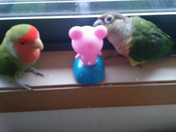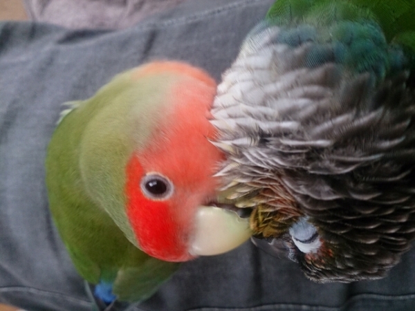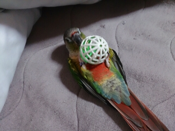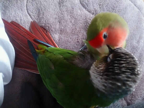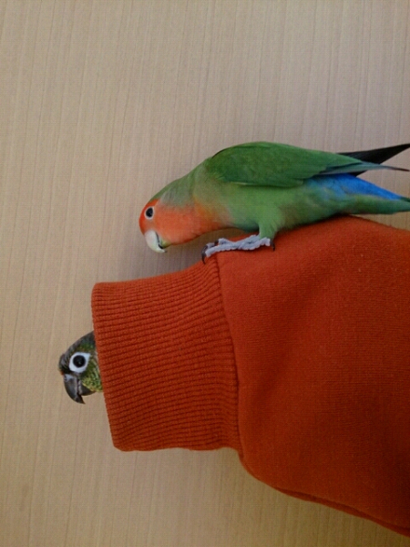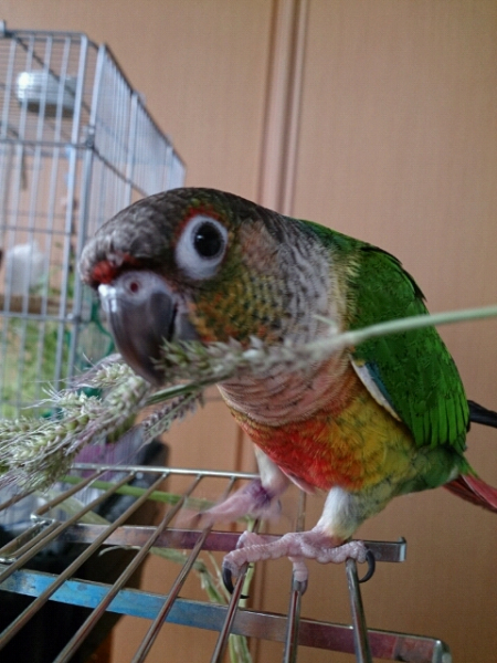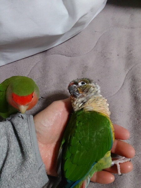小桜インコのぴ~ちゃんとワキコガネウロコインコのケロちゃんを飼っています(^O^)