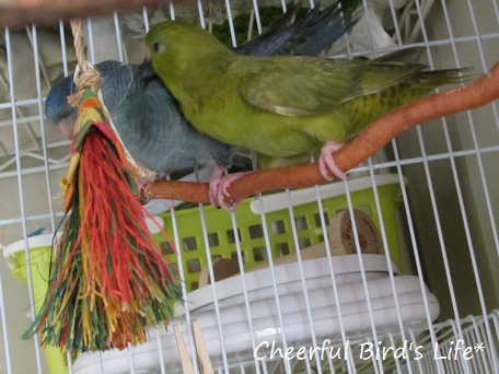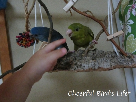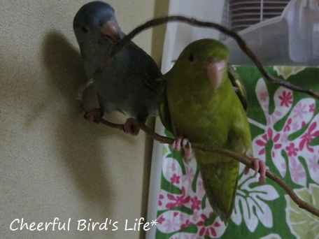 サザナミインコ♂♀只今微妙な距離の2羽+4人家族です。
