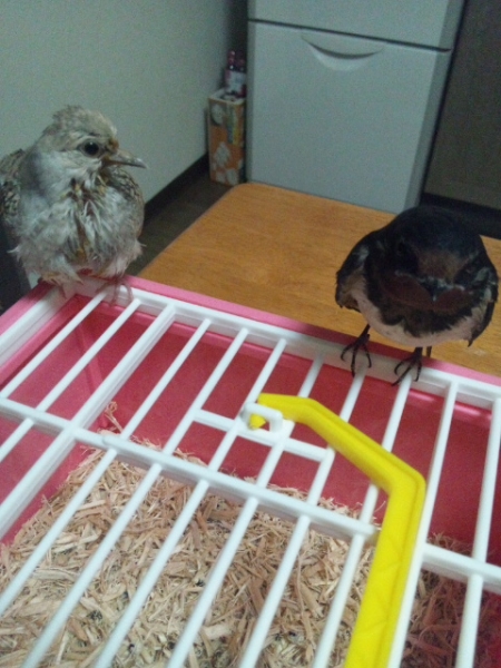 昔から鳥に憧れ続けているつばめのママです。文鳥、薄雪鳩3匹(1匹は今現在は雛)ツバメ数匹・・・羽がおかしいみたいでうまく飛べない。落ちた衝撃のせいか、てんかん発作も起こし栄養でも治らない状態。でも元気!雛を拾ってはいけないと言うけれど・・・死にかけて横たわってる鳥を無視は出来ません!何とか死なずに皆元気です。