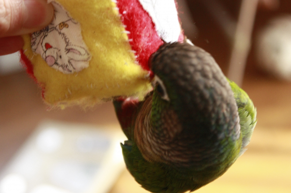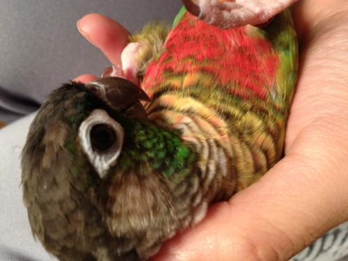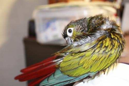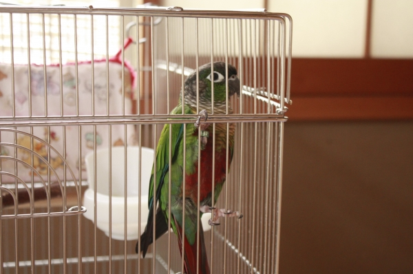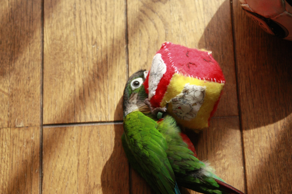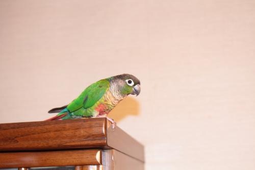 ホオミドリアカオウロコインコのう〜ろん君です。