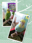 セキセイのパステルカラーレインボーの女のコがいます。 新しくスパングルグリーンの男のコが家族になりました。 よろしくお願いします。