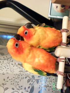 コガネメキシコインコ(2008年生まれ)のラン(♂)とテン(♀)です