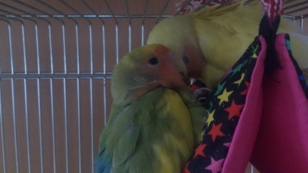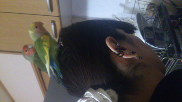 2人の子供、11歳のワンコ、9羽のコザクラインコと2羽のボタンインコの15人家族です。