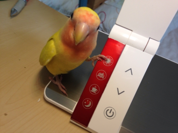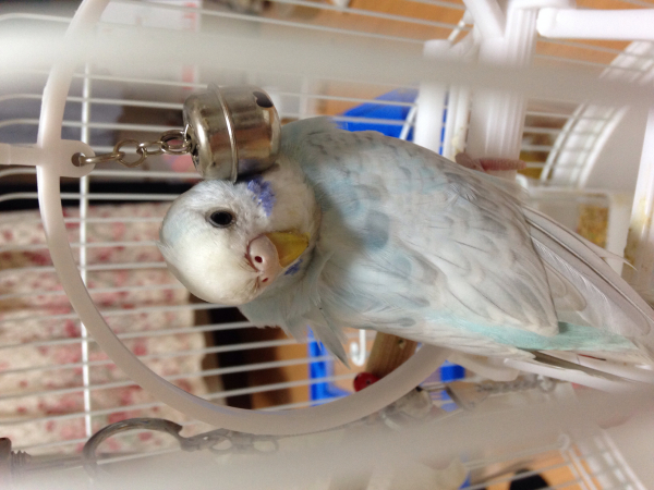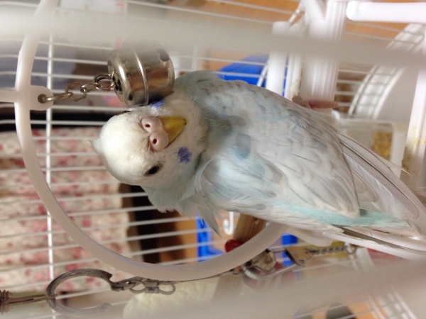 セキセイインコのぽぽちゃんの方はすごく活発で好奇心旺盛でした。
