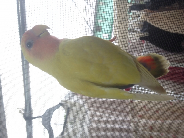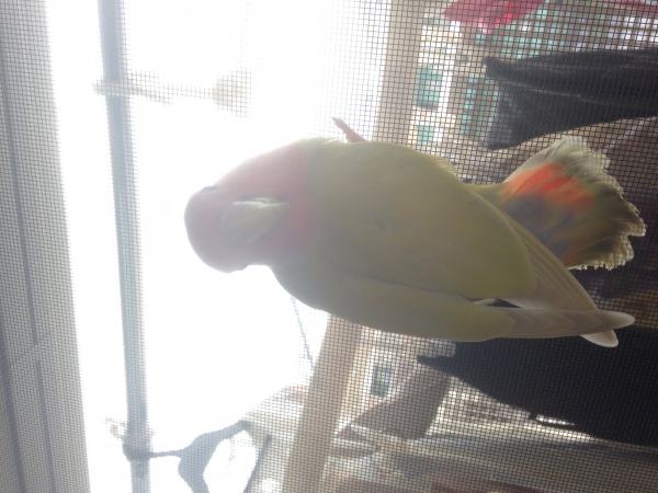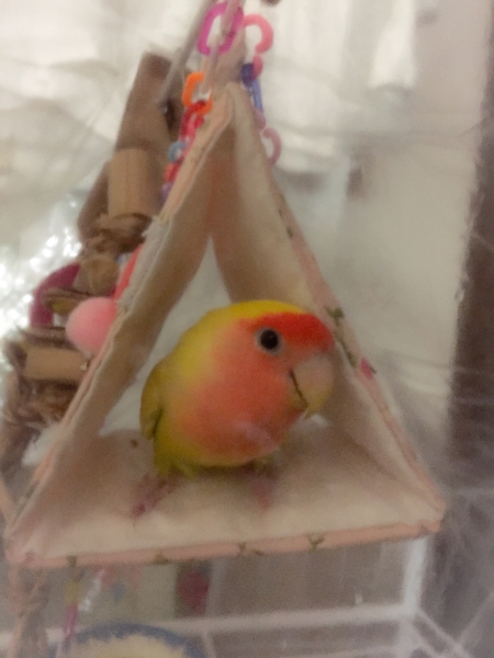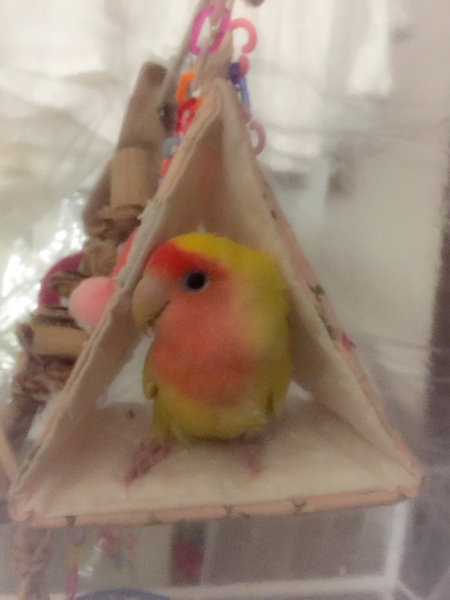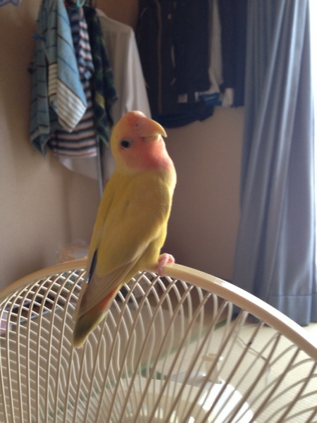 羽衣セキセイインコのぽぽちゃんは諸事情により里親さんの所に行き、現在はコザクラインコのまろんだけです。