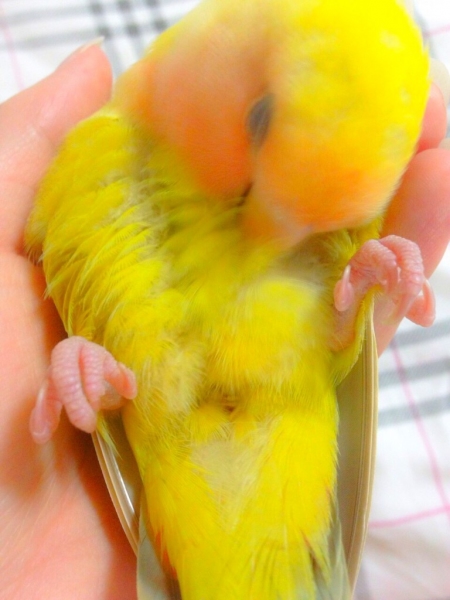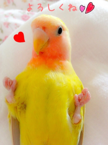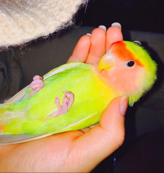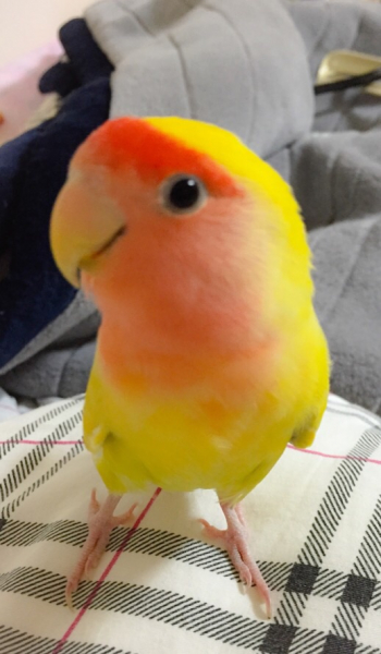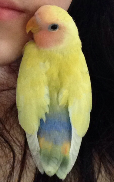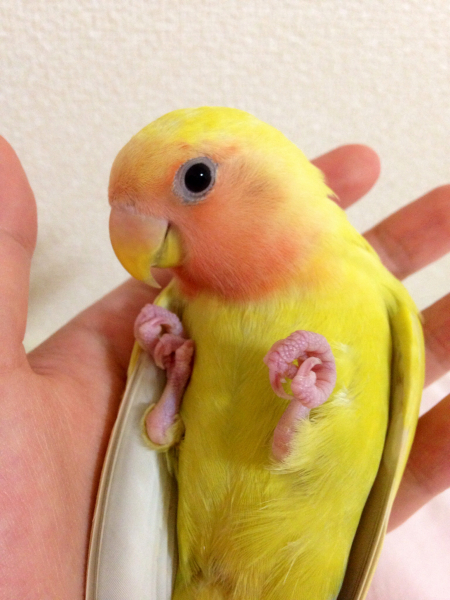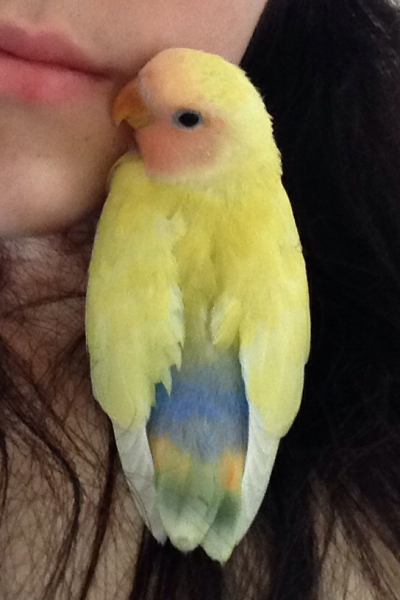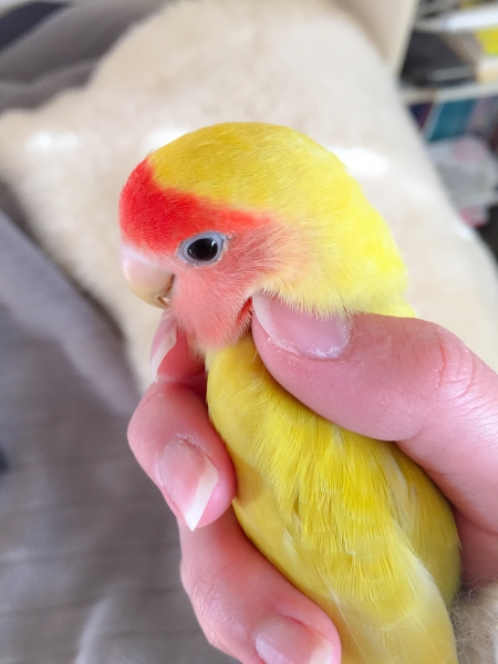 コザクラインコのまろんはニギコロが得意で、鳥よりずっと人間が大好きな甘えん坊さんです。