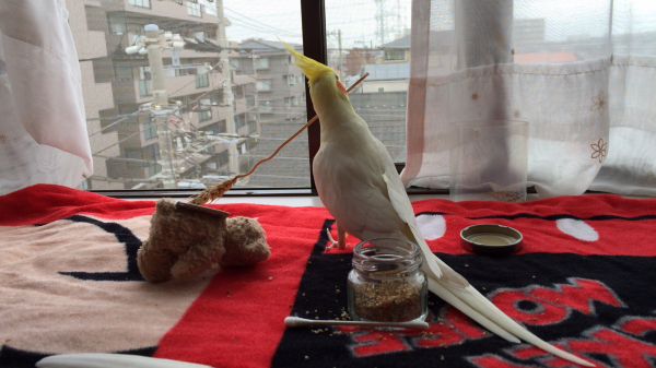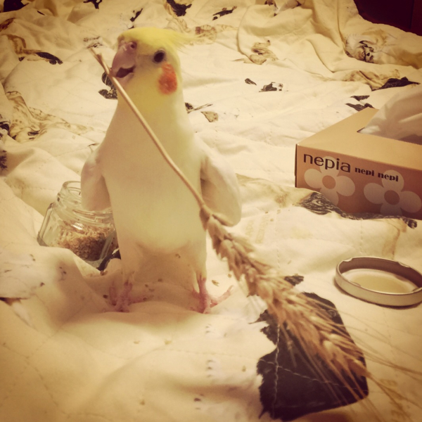 2014年1月下旬生まれのオカメインコ(オス)の【くーちゃん】を飼っています。オカメインコ初心者で四苦八苦中・・・・