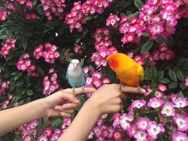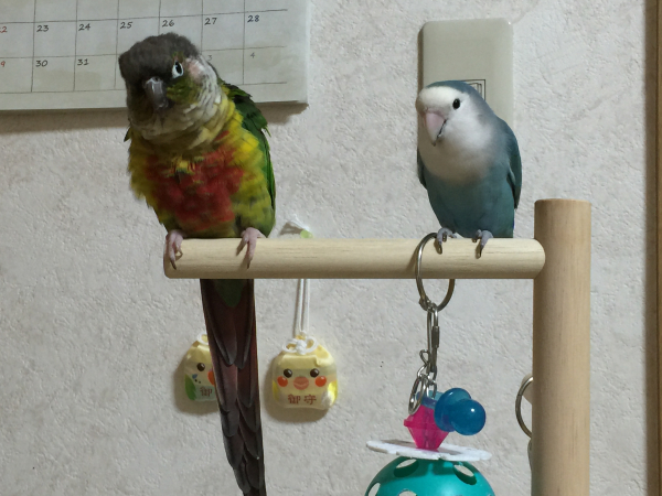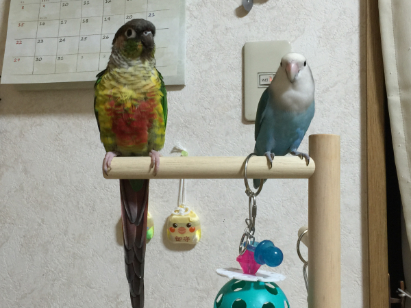 コザクラインコ(ルル)・ワキコガネインコ(ポポ)・セキセイインコ(ピー)・コガネメキシコインコ(キキ)の4羽を飼っています。ルル・ピーは私と娘に懐いています。ポポ・キキは私onlyです。鳥が大好きです。週末は、車に鳥達を乗せてドライブがてらペットショップめぐりをしています。