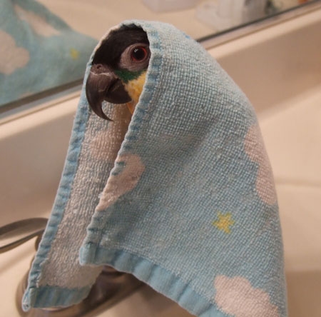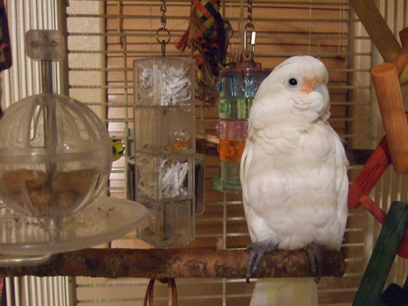 はじめまして♪ ネグレクトで毛引きが酷かったオウムを引き取り一緒に暮らしてます。