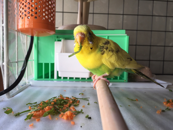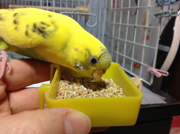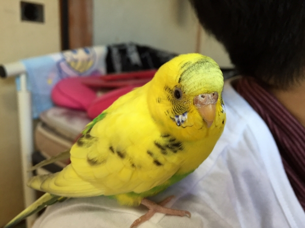 2014.10.02 19:59 みやがわぴいこ 相変わらず 体が痒いようで 足もごぼごぼになってきてしまいました 鳥専科の病院にようやく予約をいれました 再度 調べてもらおうと思います ところで セキセイインコ ですが 雌なのでお話はできないと思いますが 上下の顎を擦り合わせてゴリゴリと音をだします ブリブリと変な声を出すこともありますが みんなする動作なのでしょうか〜 最近は近くにいないと餌も食べずについてきます 顔の近くがいいようで 乗っている手を下に下ろすと噛んで 顔を見上げてにらんできます 肩ではなく 手の上じゃないと嫌なようで 時々邪魔〜 何をするときも手の甲に乗っている 今日この頃です 病院に行って 早く かゆみをとってあげるのが 今の楽しみです