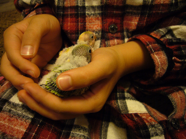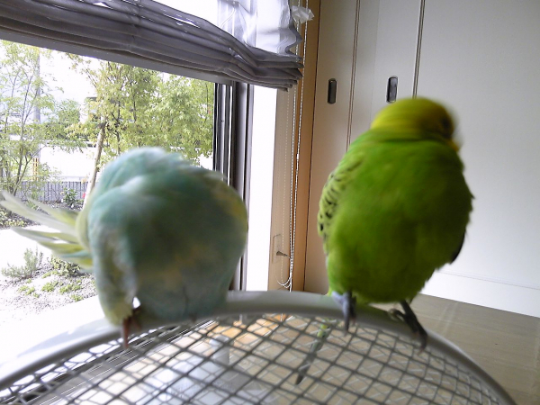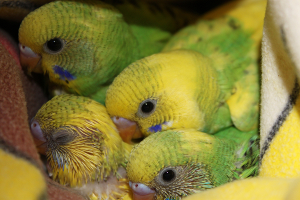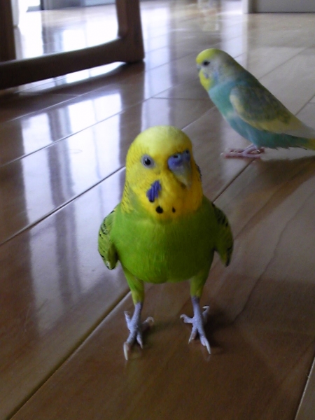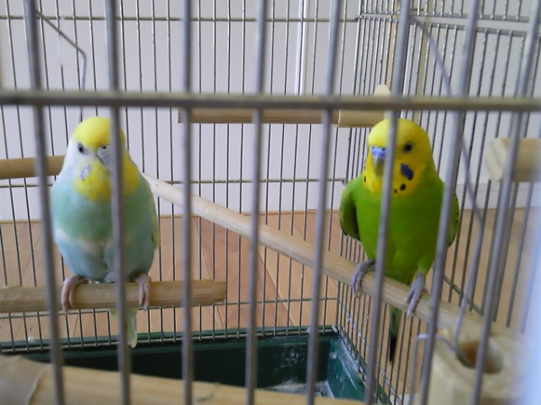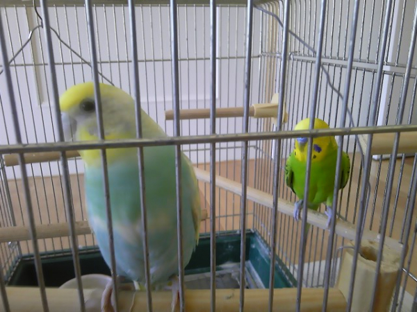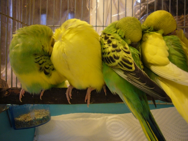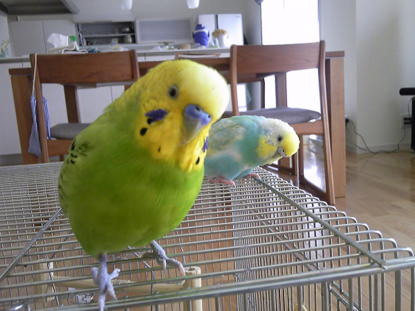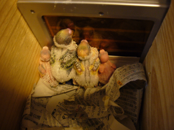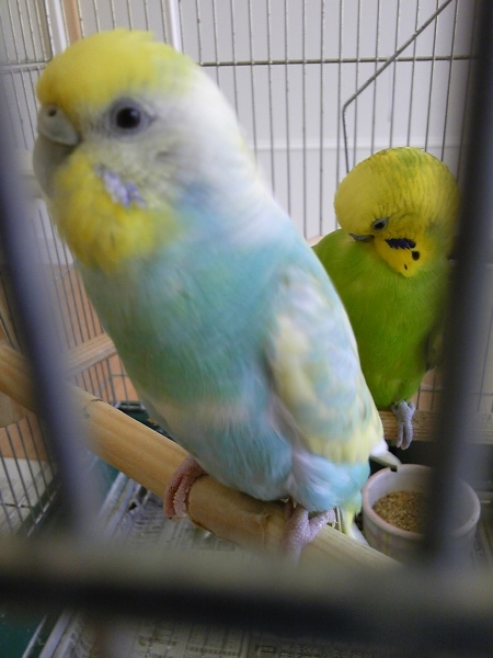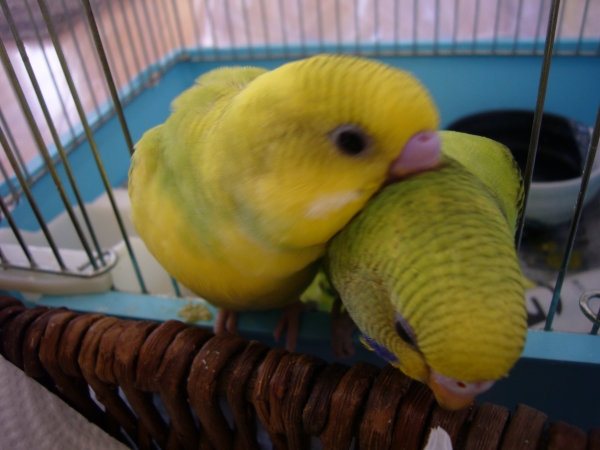 2010年10月に雛が4羽孵りました。 アクア(雌)リーフ(雄)はとても仲良しです。 子供の小鳥たちも元気に成長しています。